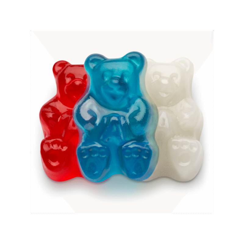 Bear-shaped gummies with retro red, white, and blue flair